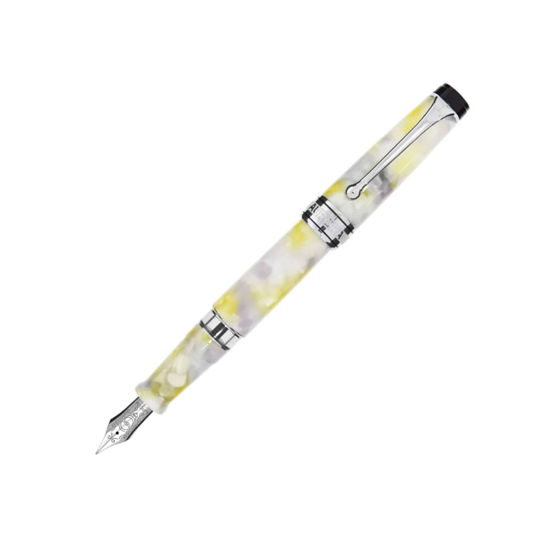 De Aurora Caleidoscopio Luce Verde vulpen maakt gebruik van een pistonvulmechanisme. De pen heeft een 18kt massief gouden penpunt, die gerhodineerd is en is voorzien van chromen randjes.
